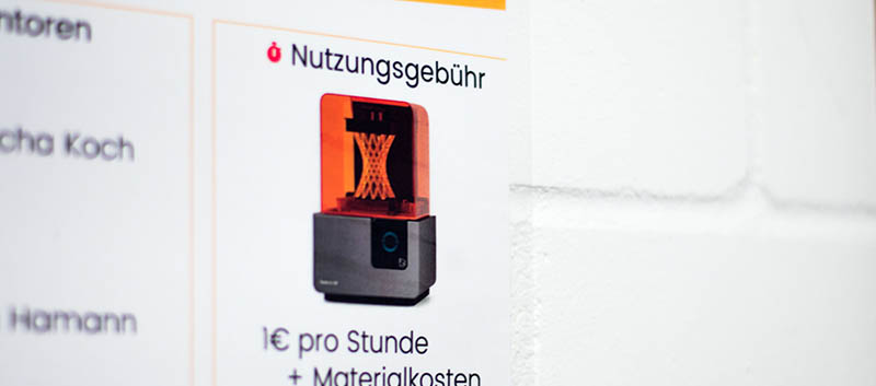 | FDM-Drucker | 1€ Tagespauschale + 0,08€ pro g Filament, 0,12€ pro Spezialsorte |